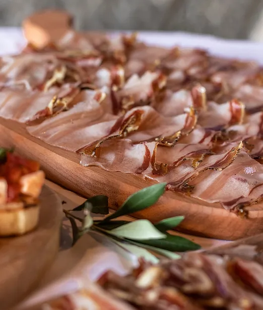 Pršutom dodamo samo sol in čas v čistem zraku na burji. Ponujamo tudi kraške suhe salame, vratovino, panceto in ostale sušene mesnine.